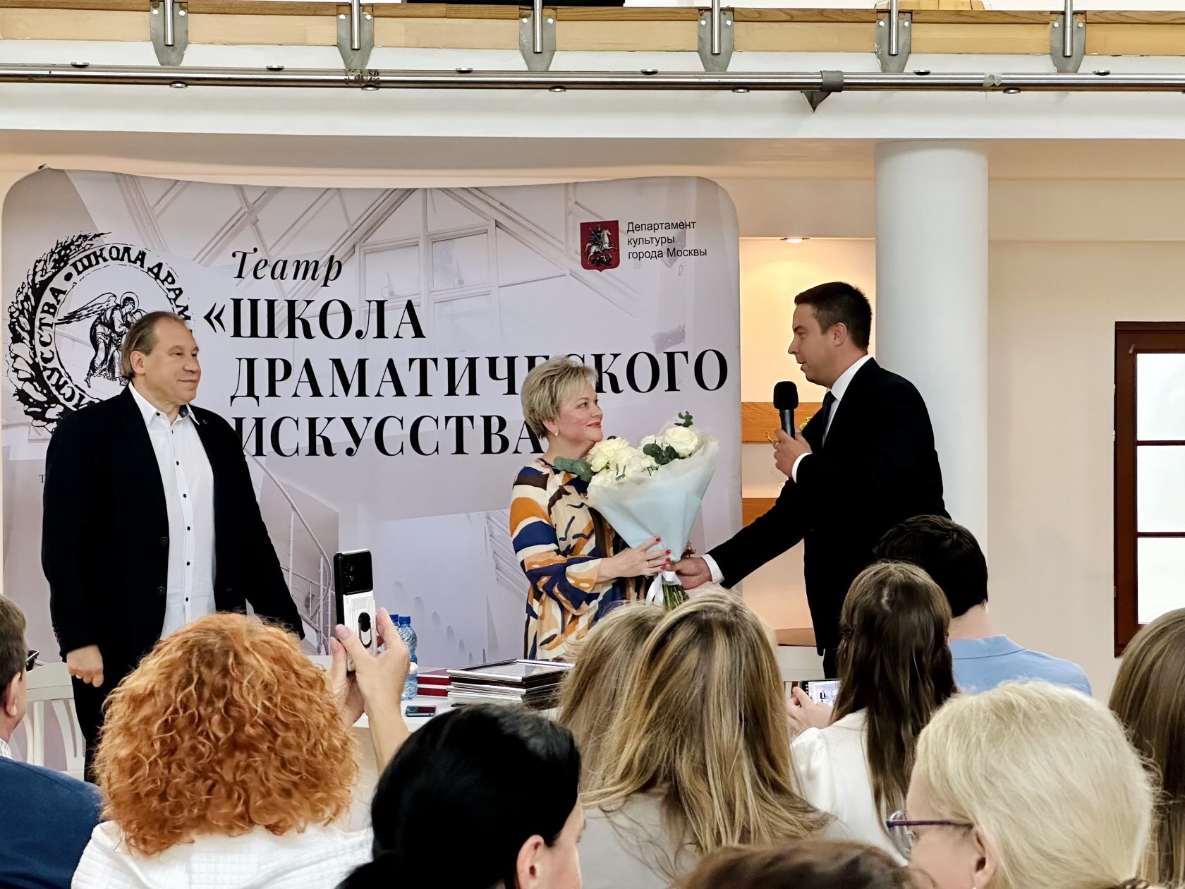 «Дорогие друзья, Департамент культуры города Москвы сердечно поздравляет вас с открытием сезона! Мы внимательно следим за развитием вашего театра и вашего дружного коллектива. Театр успешно прошёл через пилотный проект продажи билетов по паспортным данным, и мы видим, что заполняемость зрительного зала не только сохранилась, но и возросла. Спасибо вам и зрителям, которые отнеслись к этому с пониманием и сделали всё необходимое, чтобы посетить ваш театр и прикоснуться к вашему искусству. «Школа драматического искусства» — в числе лидеров по экономическим показателям. Желаем театру дальнейшего развития, успешного сезона и удачи на новом пути!»