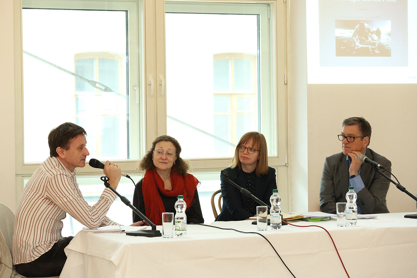 7-го апреля первым событием фестивального дня стала дискуссия «Потому что когда ты свободен то не свободен вовсе». О творчестве Юна Фоссе, парадоксах его художественного метода беседовали режиссер Александр Огарев, драматург «Норвежского Театра» Ула Бё и редактор Юна Фоссе Сесилие Сейнесс.