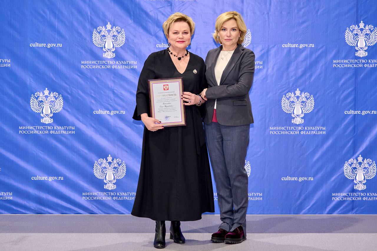 Награду вручила Министр культуры РФ Ольга Борисовна Любимова на церемонии вручения государственных наград деятелям культуры на выставке «Россия».